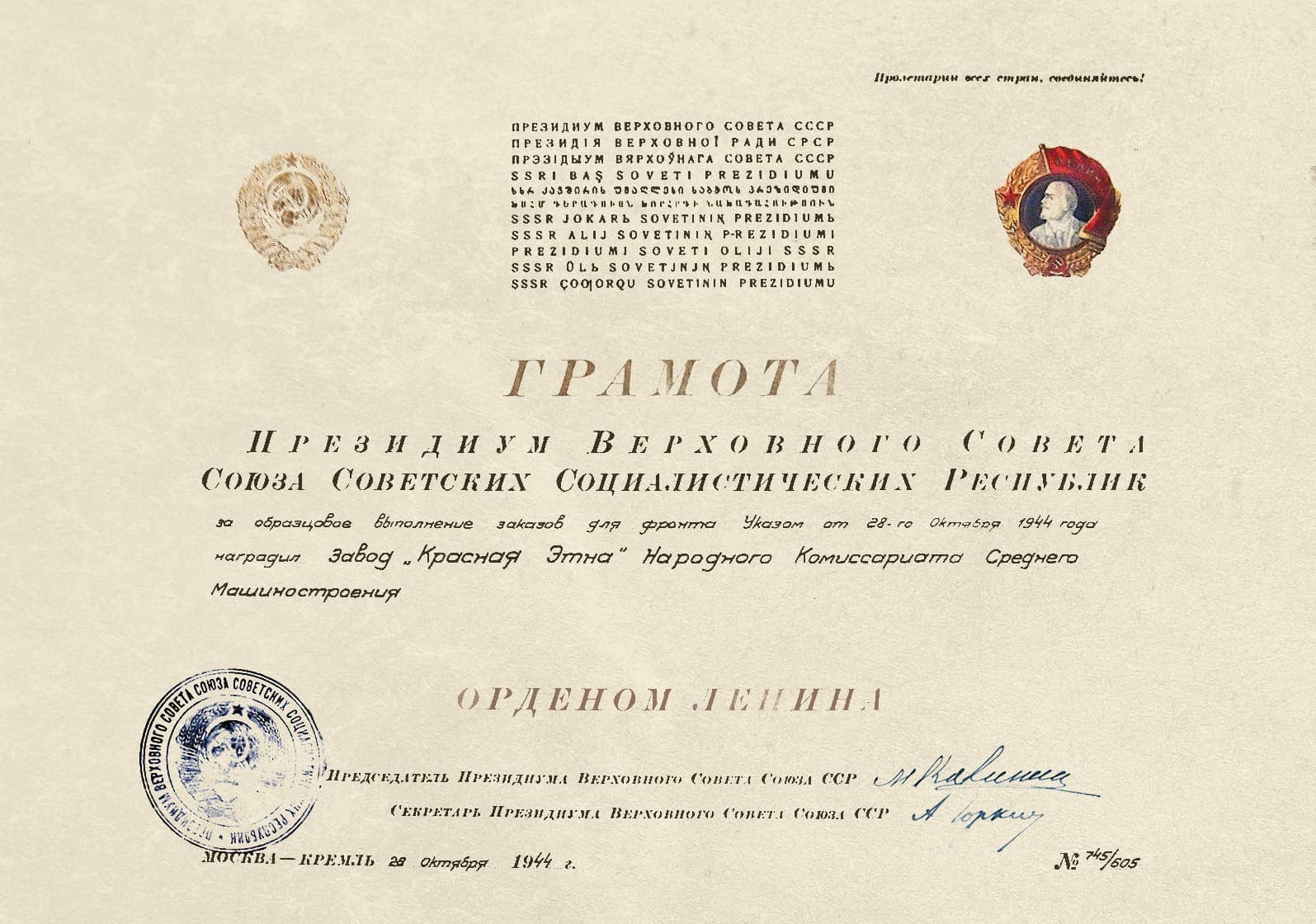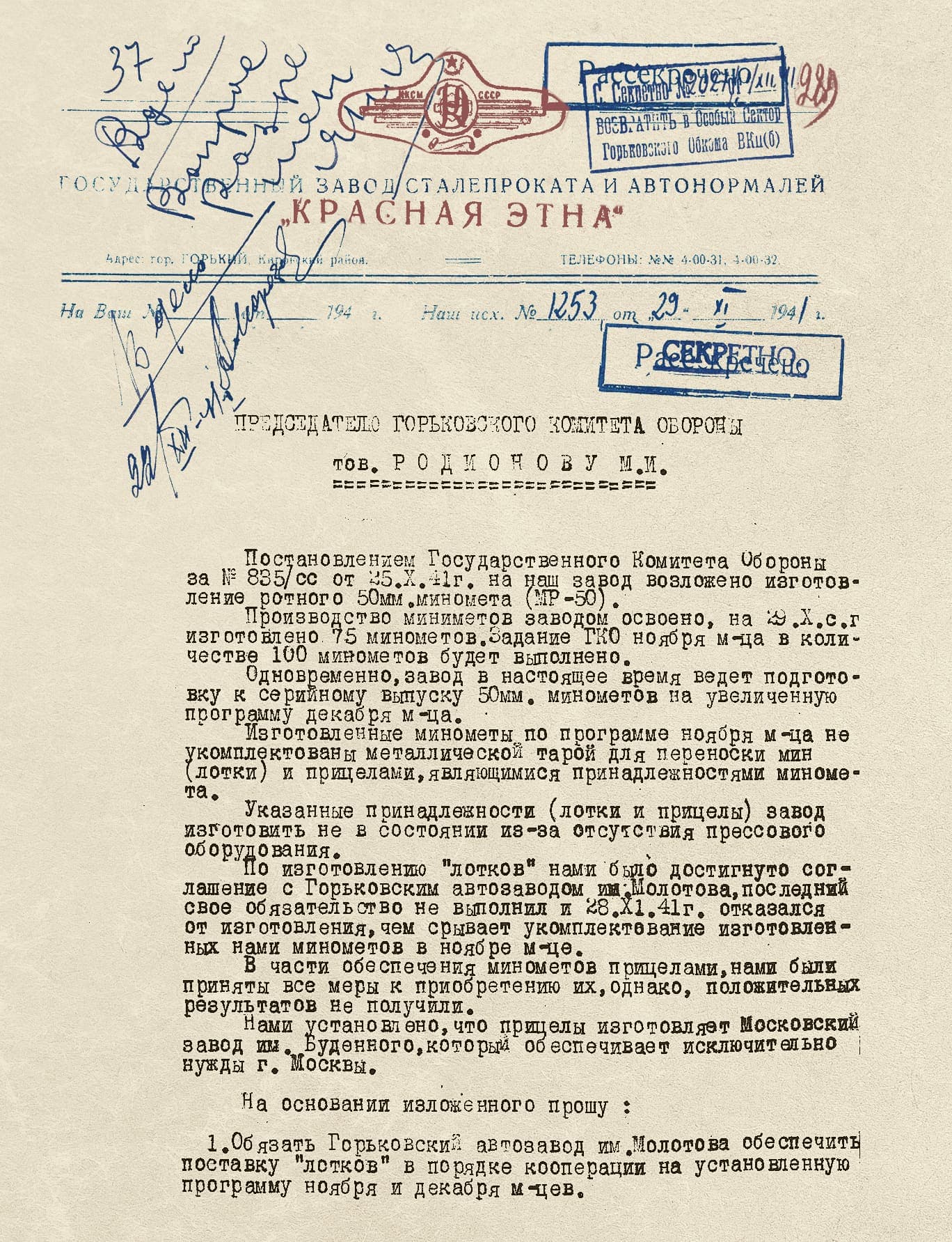 Эвакуированные предприятия укрепили «Красную Этну» кадрами. Из Ленинграда в Горький прибыли 495 человек, из Харькова — 146, из Запорожья и Белоруссии — чуть больше сотни. В сумме — около 8% от численности персонала «Красной Этны».