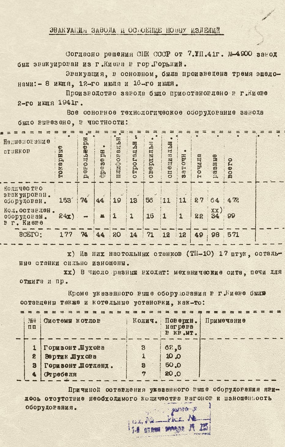 В начале войны завод имени Г. И. Петровского был эвакуирован в Горький из Киева. Первый эшелон с оборудованием и людьми прибыл 19 июля 1941 года, последний — 27 июля 1941 года. Подготовленных производственных площадей для перебазированного завода не было, однако уже с сентября предприятие начало свою работу на разрозненных площадках.