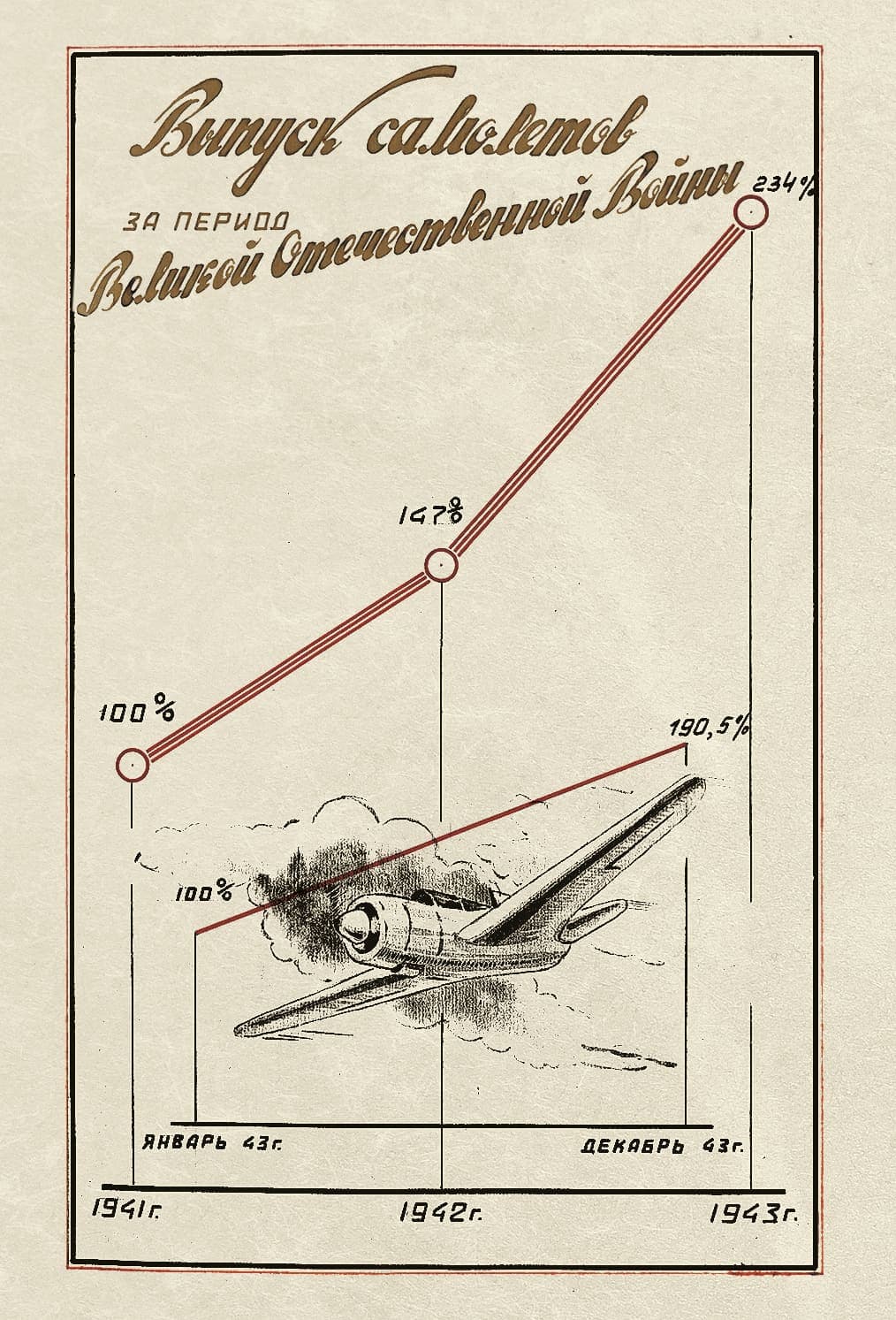 Всего за годы войны Горьковский авиазавод № 21 выпустил 19 202 самолета. Без снижения объемов серийного производства был освоен выпуск шести модификаций самолетов семейства «Ла», включая две учебные.