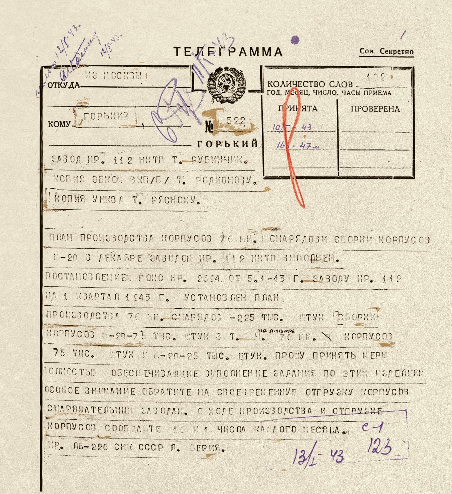 За годы войны коллектив завода «Красное Сормово» 33 раза получал переходящее Красное знамя Государственного комитета обороны