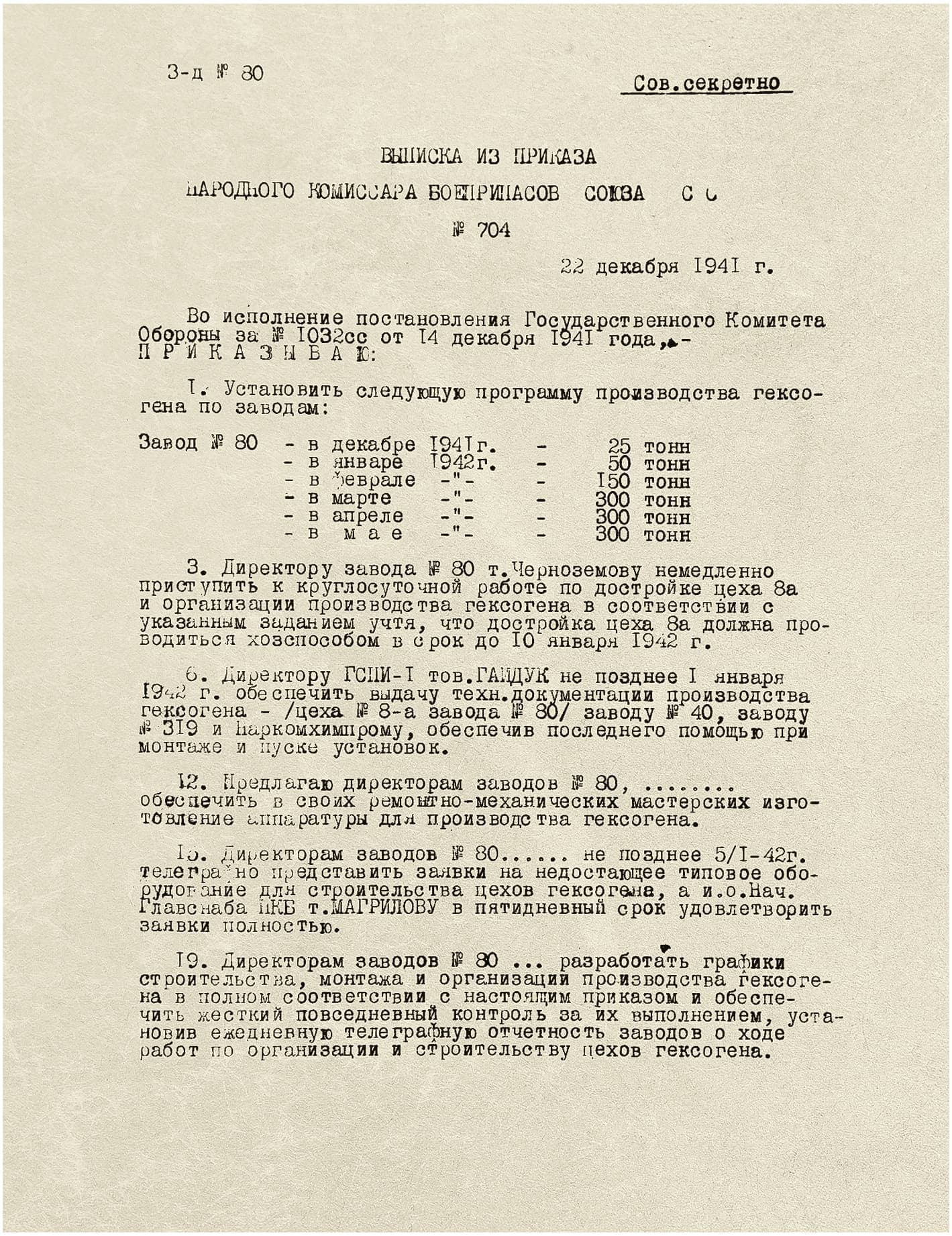 Мобилизационный план на второе полугодие 1941 года предполагал рост выпуска боеприпасов по сравнению с первым полугодием в три раза, взрывчатых веществ — вдвое. Из-за эвакуации большего количества других боеприпасных заводов страны горьковскому предприятию предстояло освоить производство 33 новых номенклатур боеприпасов и технологию снаряжения суррогатными веществами (взрывчатые вещества на основе аммонийной селитры) 23-х видов продукции (что в перспективе обеспечивало 70-процентную экономию тротила).