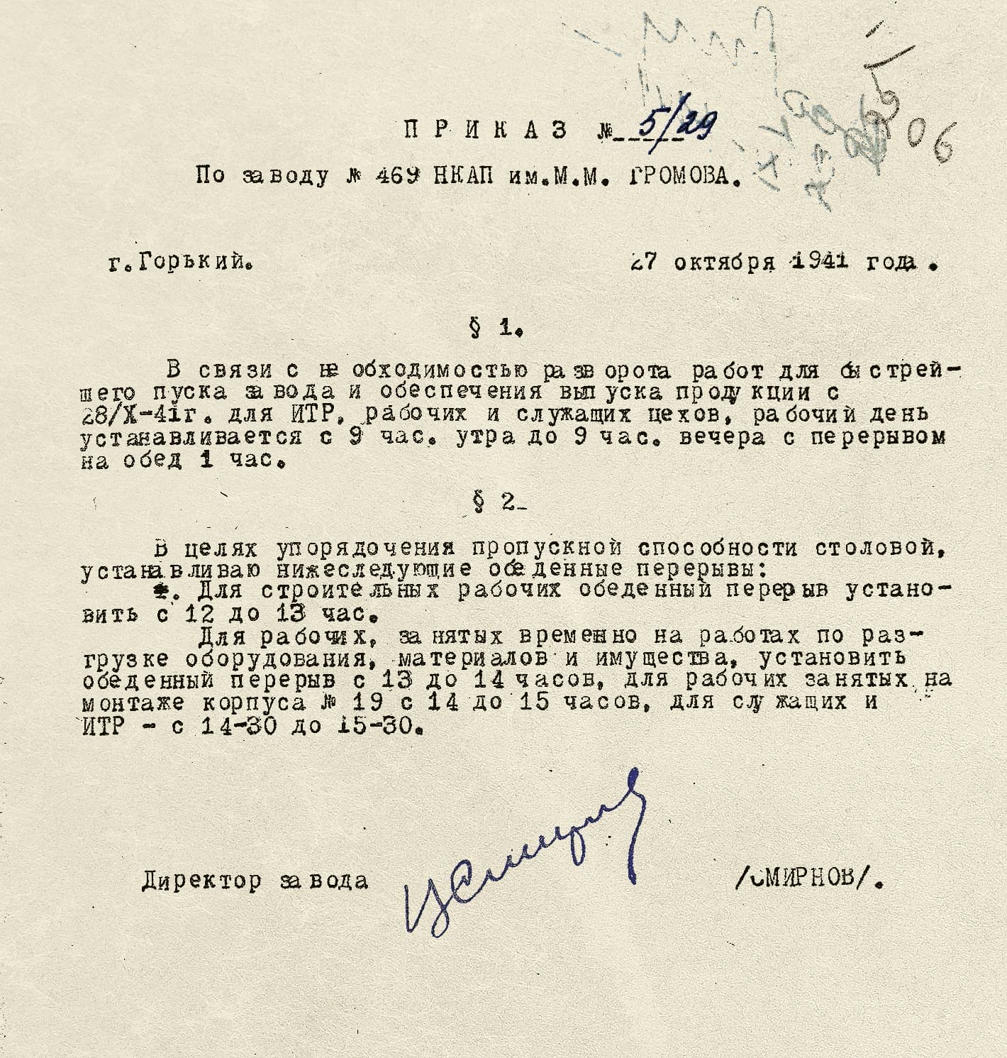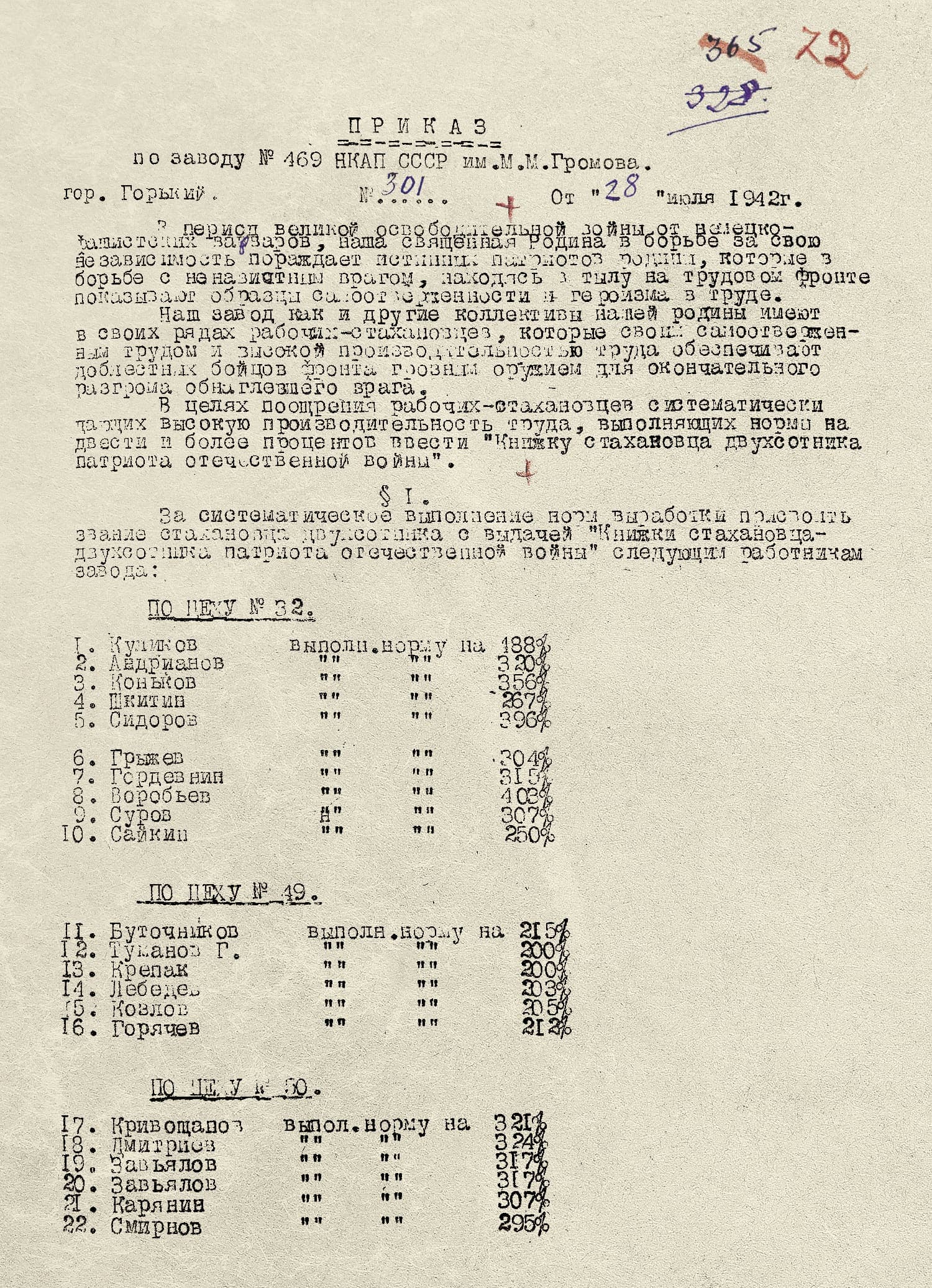 29 октября 1942 года газета «Горьковская коммуна» посвятила материал успехам громовцев: «Работая по суточному графику, завод имени Громова 27 октября выполнил увеличенную против сентября октябрьскую производственную программу. В тот же день коллектив завода досрочно выполнил возросшую по сравнению с прошлым годом годовую производственную программу. При одинаковом количестве оборудования производительность труда в 1942 году против прошлого года возросла на 228%. Инженеры, мастера и рабочие завода провели большую работу по рационализации производства и совершенствованию технологии».