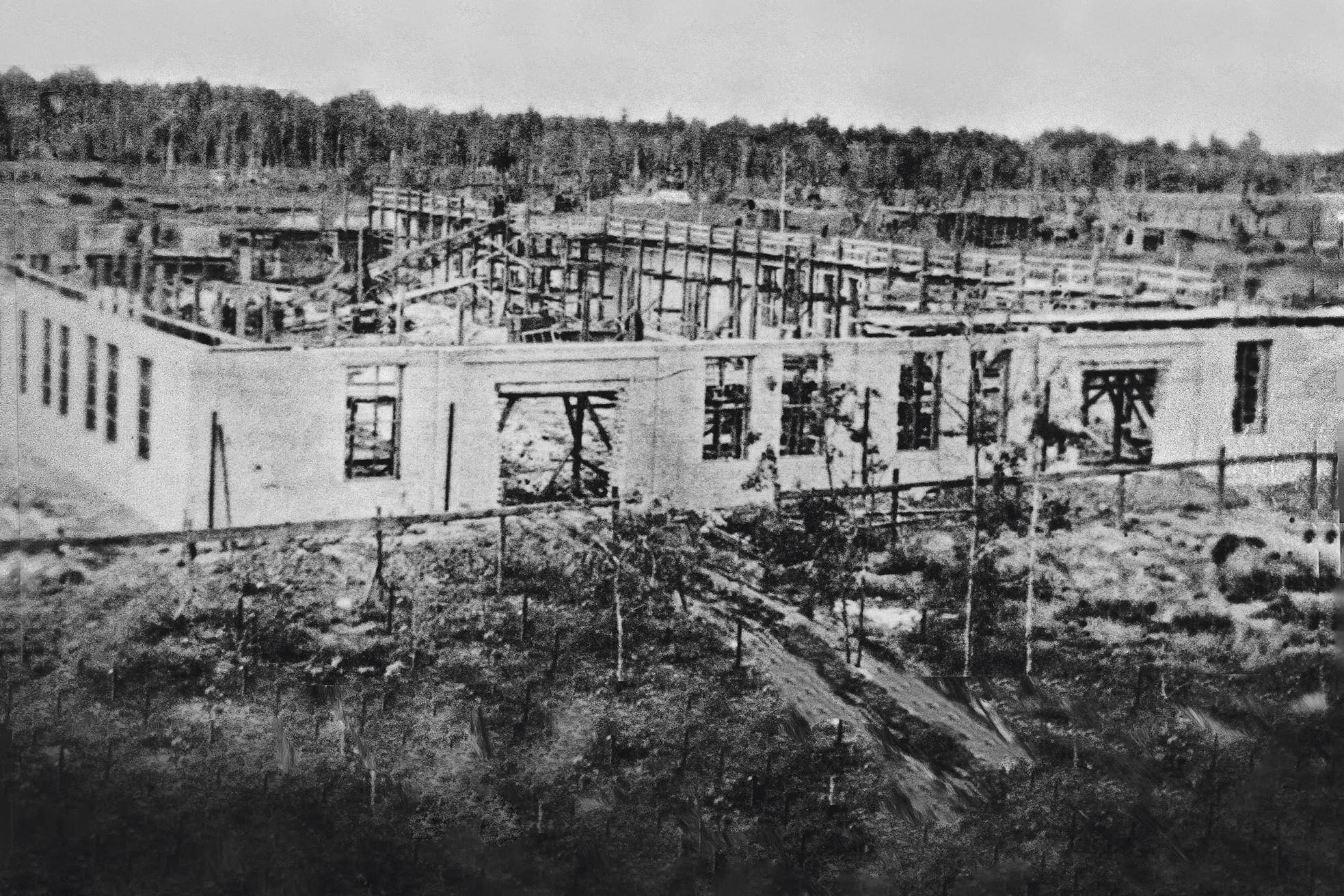 Строительная площадка представляла собой пустырь с торфяным болотом. Ни производственных корпусов, ни водопровода, ни канализации