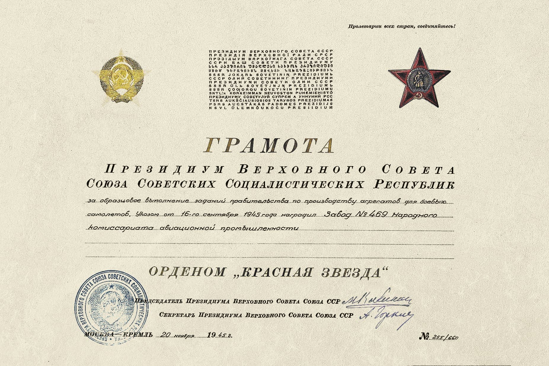 Регулярно перевыполняя план, завод № 469 был в числе передовых предприятий отрасли и участвовал во всех всесоюзных соревнованиях. Так, до конца 1944 года коллектив обязался снизить себестоимость продукции на 17%, а производительность труда увеличить на 10%. В ноябре два основных цеха перешли на хозяйственный расчет. За счет рационализаторских предложений трудоемкость обработки деталей для радиаторов была снижена наполовину.